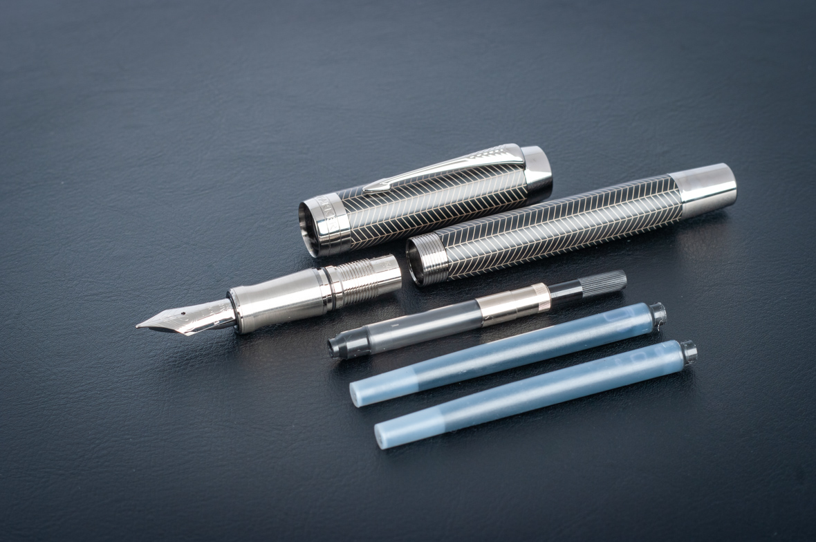 Перьевая ручка Parker Duofold Prestige Centennial Black Chevron CT от официального дилера Parker в Смоленске. Вы можете дополнительно заказать гравировку, которая подчеркнет Вашу оригинальность и придаст памятность статусному подарку. Все ручки Паркер поставляются в фирменном футляре.